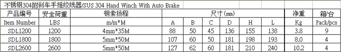 臺(tái)灣帕薩克不銹鋼附剎車手搖絞盤技術(shù)參數(shù):