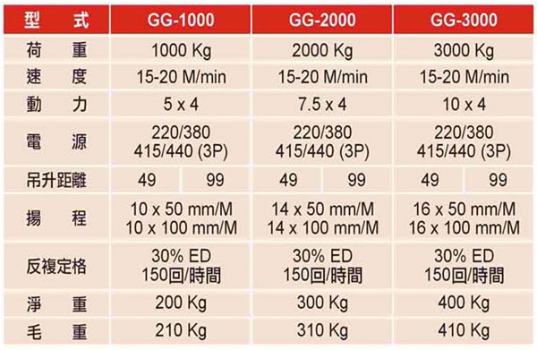 臺(tái)灣KIO電動(dòng)卷?yè)P(yáng)機(jī)技術(shù)參數(shù):