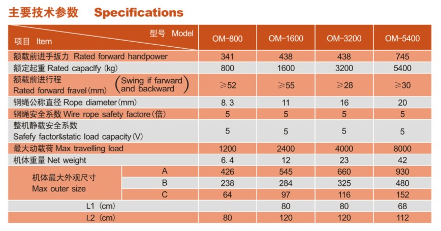 江蘇歐瑪鋼絲繩牽引機(jī) OM WIRE ROPE PULLING HOIST 相關(guān)參數(shù):