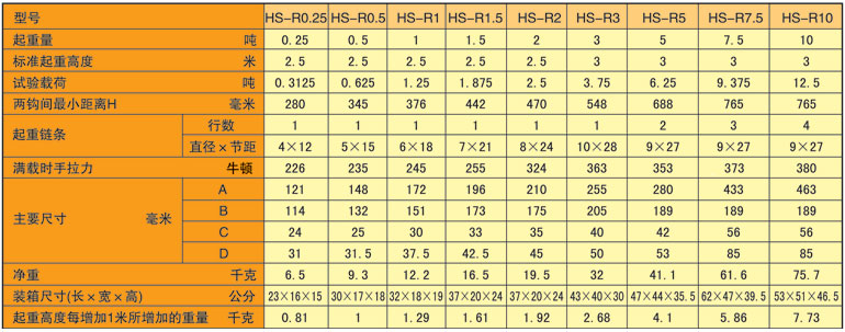 浙江五一雙鴿手拉葫蘆HS-R型手拉葫蘆外形簡潔美觀,表面處理精致,齒輪及起重鏈輪采用水噴砂表面處理技術(shù),起重鏈輪采用鍛鋼件金加工,精度高、強(qiáng)度好。0.25噸~3噸均采用單鏈結(jié)構(gòu),工作效率高。傳動機(jī)構(gòu)采用標(biāo)準(zhǔn)軸承,拆卸、維修更方便。具有過載保護(hù)功能,使用更安全。