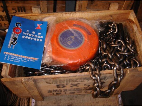 第二張是封箱完畢即將發(fā)貨的手拉葫蘆樣子,一般是用木箱裝手拉葫蘆,可以起到防潮的作用,對(duì)內(nèi)部手拉葫蘆也有保護(hù)作用。