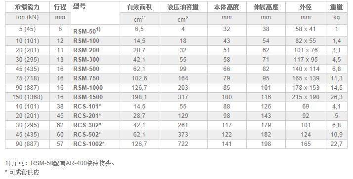 美國恩派克RSM RCS-系列單作用薄型液壓油缸技術參數(shù):