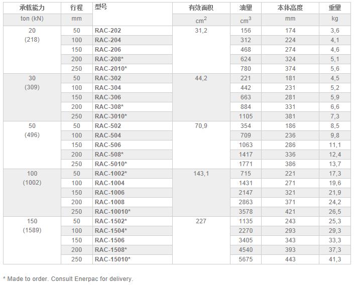 RAC-系列單作用鋁制油缸表面經(jīng)過硬處理,防止損壞;底座采用鋼制底座,能夠防止承載時發(fā)生損壞,整體式擋圈防止柱塞過度伸長,加大油缸承受最大的頂升力量,復合支撐環(huán)防止金屬間接觸,能夠有效防止10%側向載荷,所有型號的油缸都配有CR-400快速接頭和防塵帽,所有型號的油缸都符合ASME B-30.1和ISO10100標準。