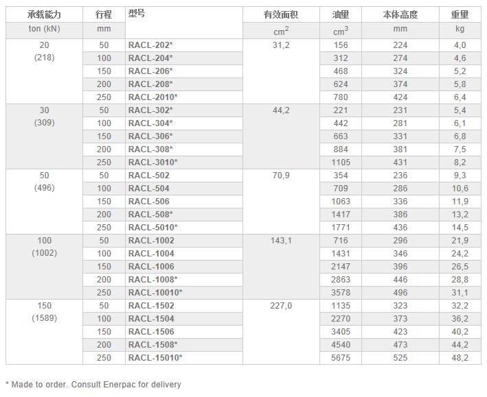 美國恩派克RACL-系列鋁制螺母鎖定油缸技術(shù)參數(shù):