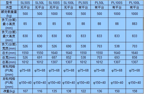無錫虎力PL型腳踏剪式升高液壓搬運(平臺)車技術(shù)參數(shù):