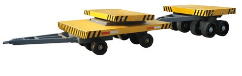 無錫虎力超長平板車前平板車長2000mm寬1200mm高800mm,背載式轉(zhuǎn)盤,前后擺幅5度,左右旋轉(zhuǎn)360度;采用13.5x7.5x8實芯輪胎8只,前懸轉(zhuǎn)盤轉(zhuǎn)向后懸定向,載重12噸;后平板車長1200mm寬1200mm高800mm載重18D噸;采用18x8x14實芯輪胎8只擺幅式聯(lián)接,無轉(zhuǎn)盤設(shè)計;前后車相連,適用于超長(16m-30m)貨物運輸。