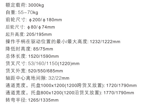 浙江西林WA平板搬運車技術(shù)參數(shù):
