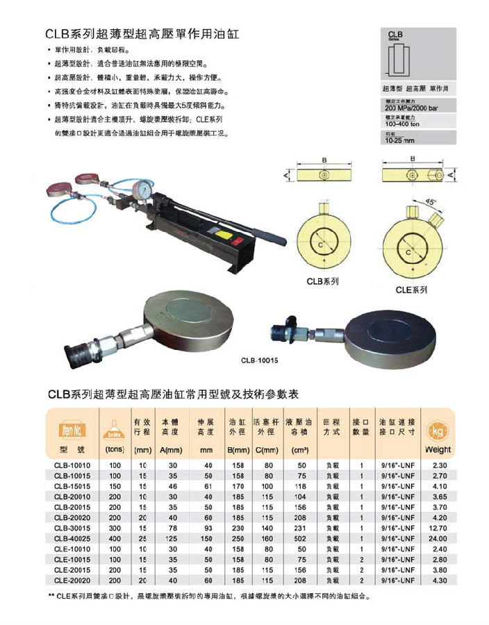| CLB-20020 | 200 | 20 | 40 | 60 | 185 | 115 | 208 | 負載 | 1 | 9/16*UNF | 4.2 |